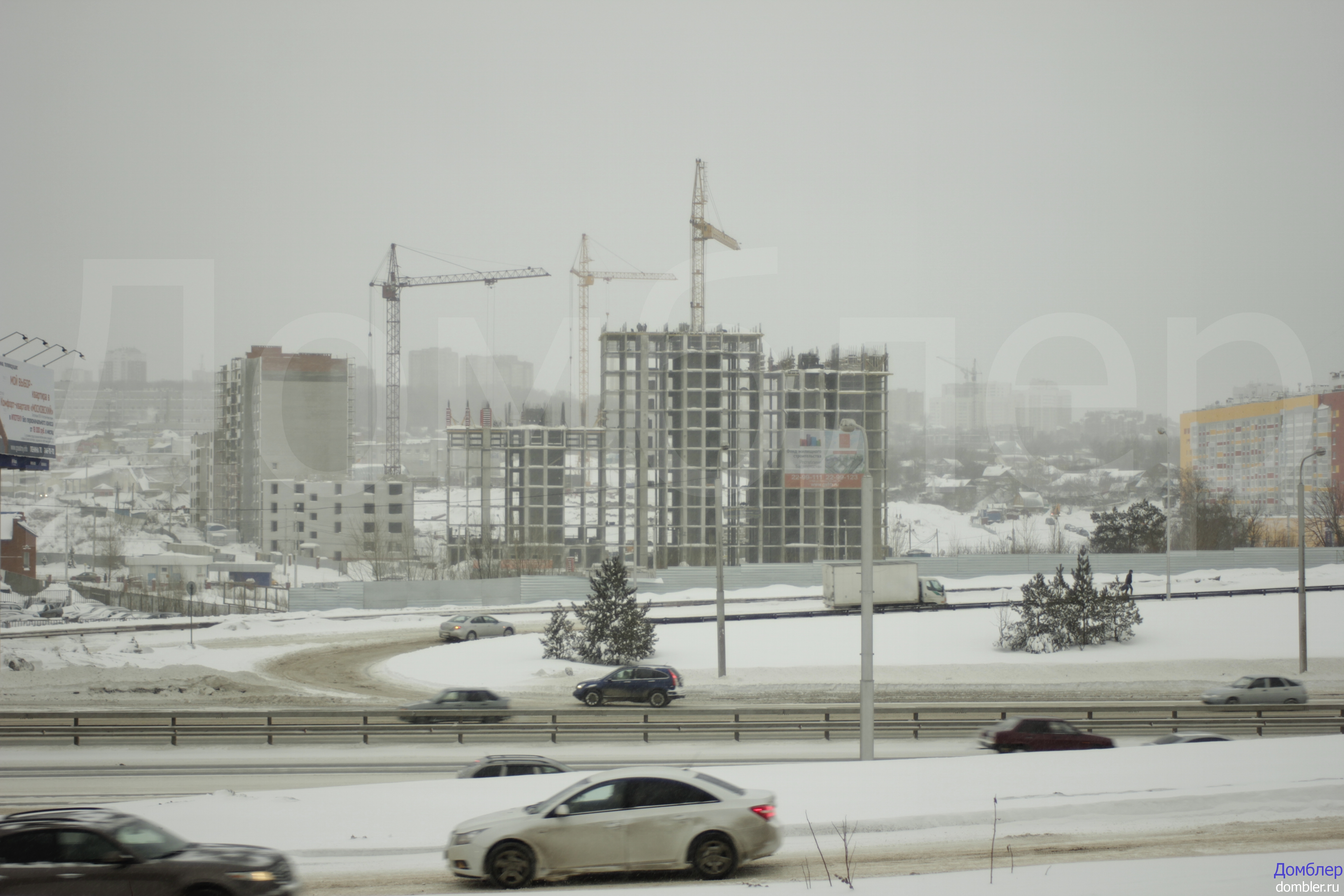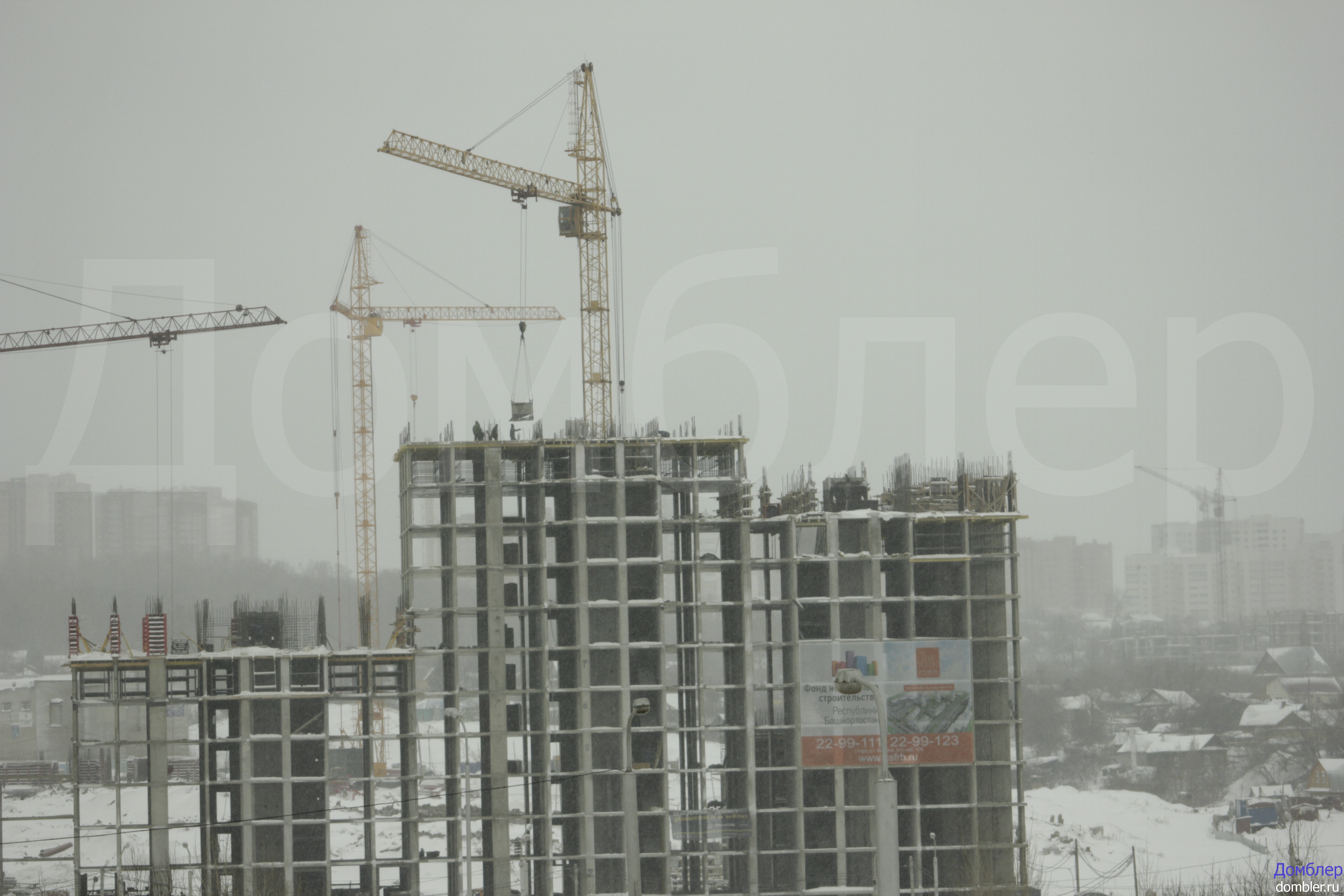 На момент моего нахождения на объекте находился миксер, он выгрузил бетонную смесь и выезжал. Башенный кран подавал смесь на двенадцатый этаж. На всех секция связана арматура и установлена опалубка. Кирпичей не было обнаружено, так как много работы по монолиту. Важно отметить, дом близко расположен к проспекту С.Юлаева – важнейшей транспортной артерией города.