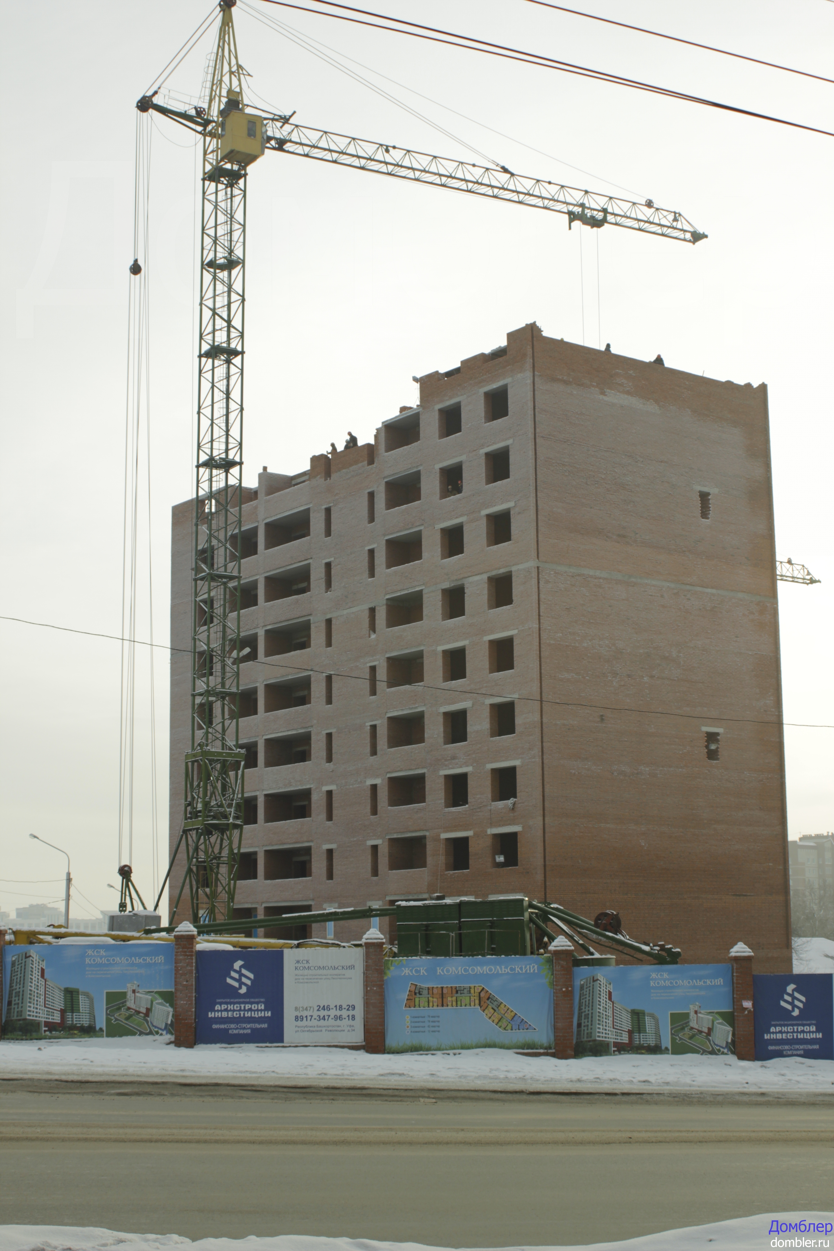 Увиденным остался крайне доволен. Сразу бросаются в глаза два башенных крана которые то подают кирпичи, то тары с бетоном на верхние этажи. Одна за другой к участку подъезжают бетоносмесители, которых встречает бетононасос. Рабочих видно почти на каждом этаже – стараются, несмотря на мороз! Материал аккуратно соскладирован на участке – кирпичи, железобетонные плиты, доски. Работа кипит!